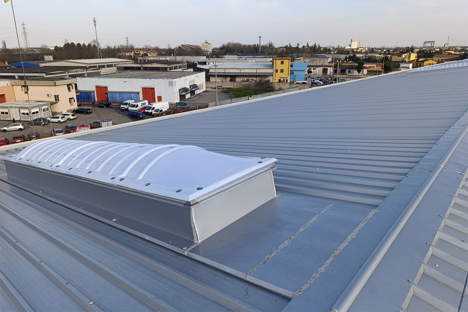 Ogni scossalina e ogni compluvio viene studiato per integrarsi armoniosamente con il manto di copertura, sia esso in tegole, pannelli sandwich o lamiera.